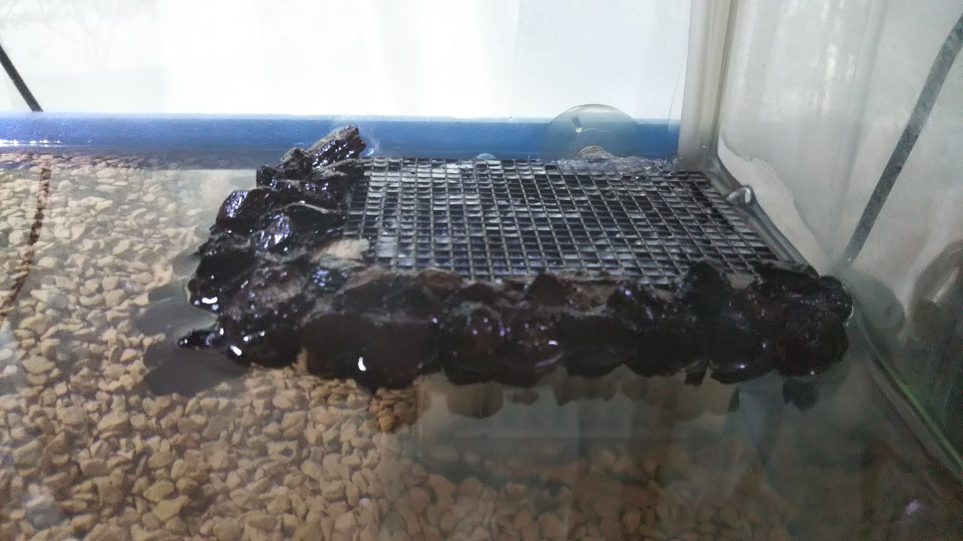 青枠リサイクル水槽の陸地が思ったより少ないので陸地追加。