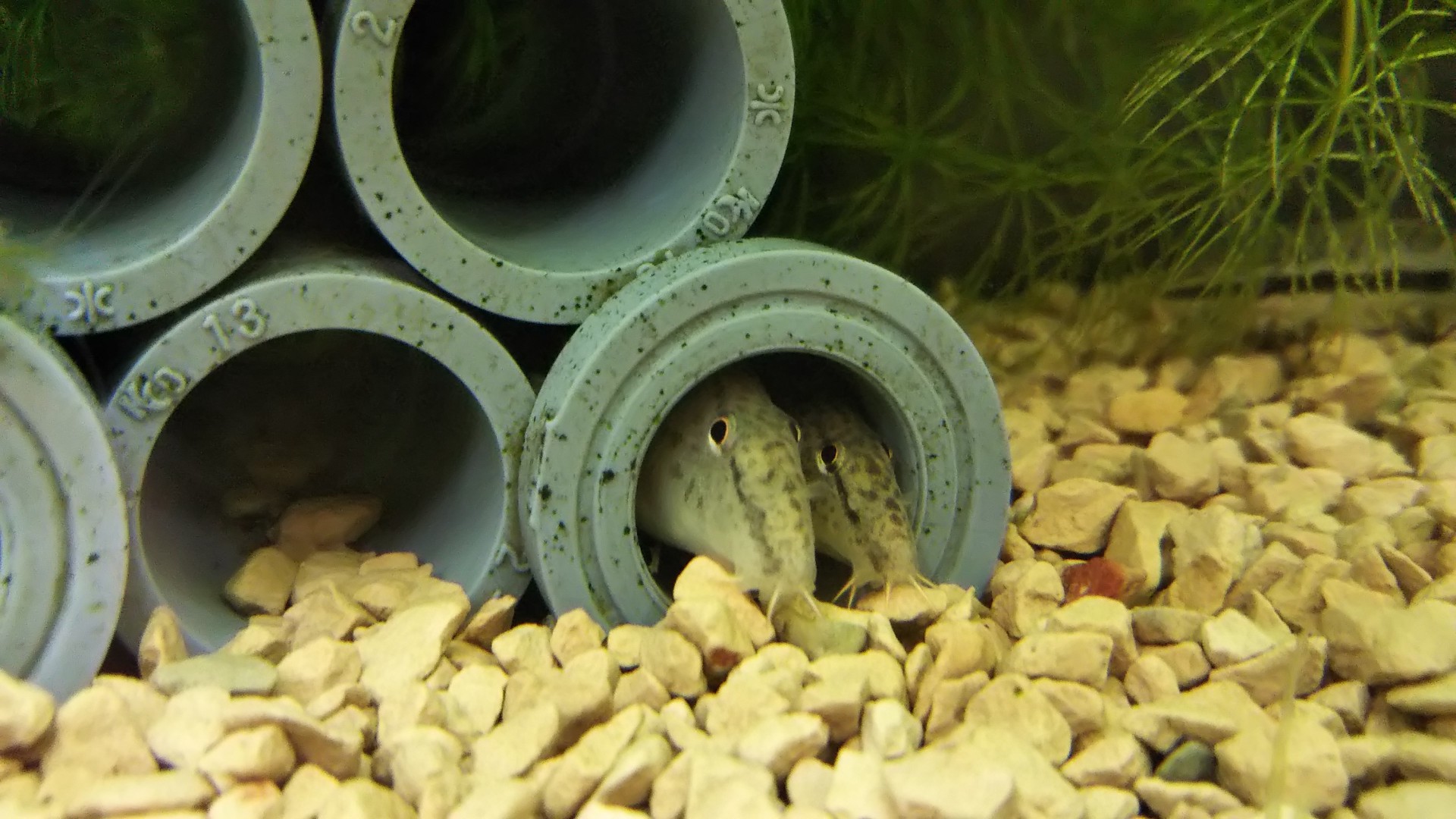 シマドジョウ用にこしらえた塩ビパイプ山に珍しく二匹詰まってた。