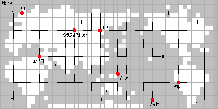 一応、矢印は階層移動のエレベーター、Bはバッテリー。