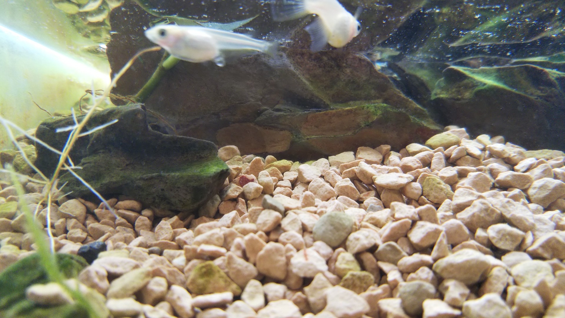 配置した石の隙間で稚エビも育ってる様子。
