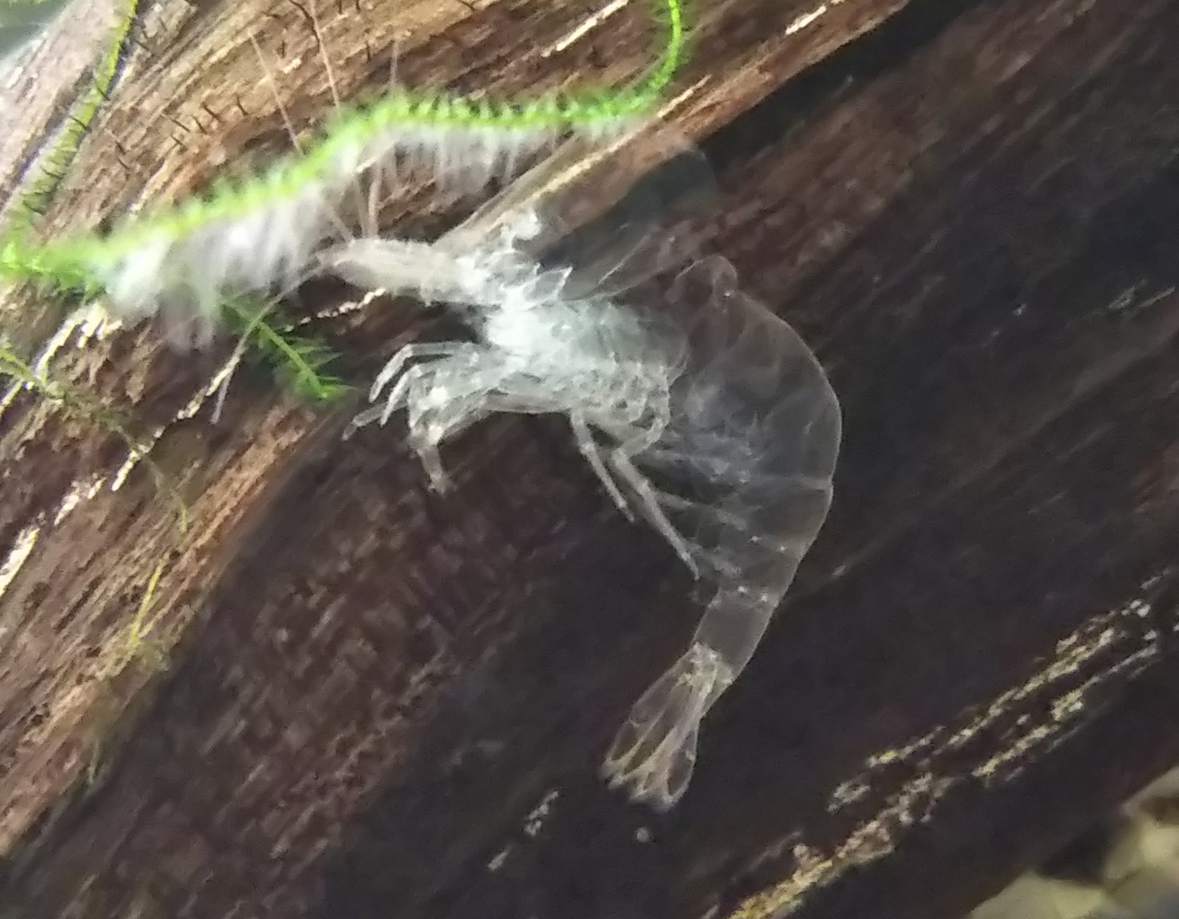 で、関係ないけどドジョウ水槽にてミナミヌマエビの抜け殻が綺麗に残ってた。