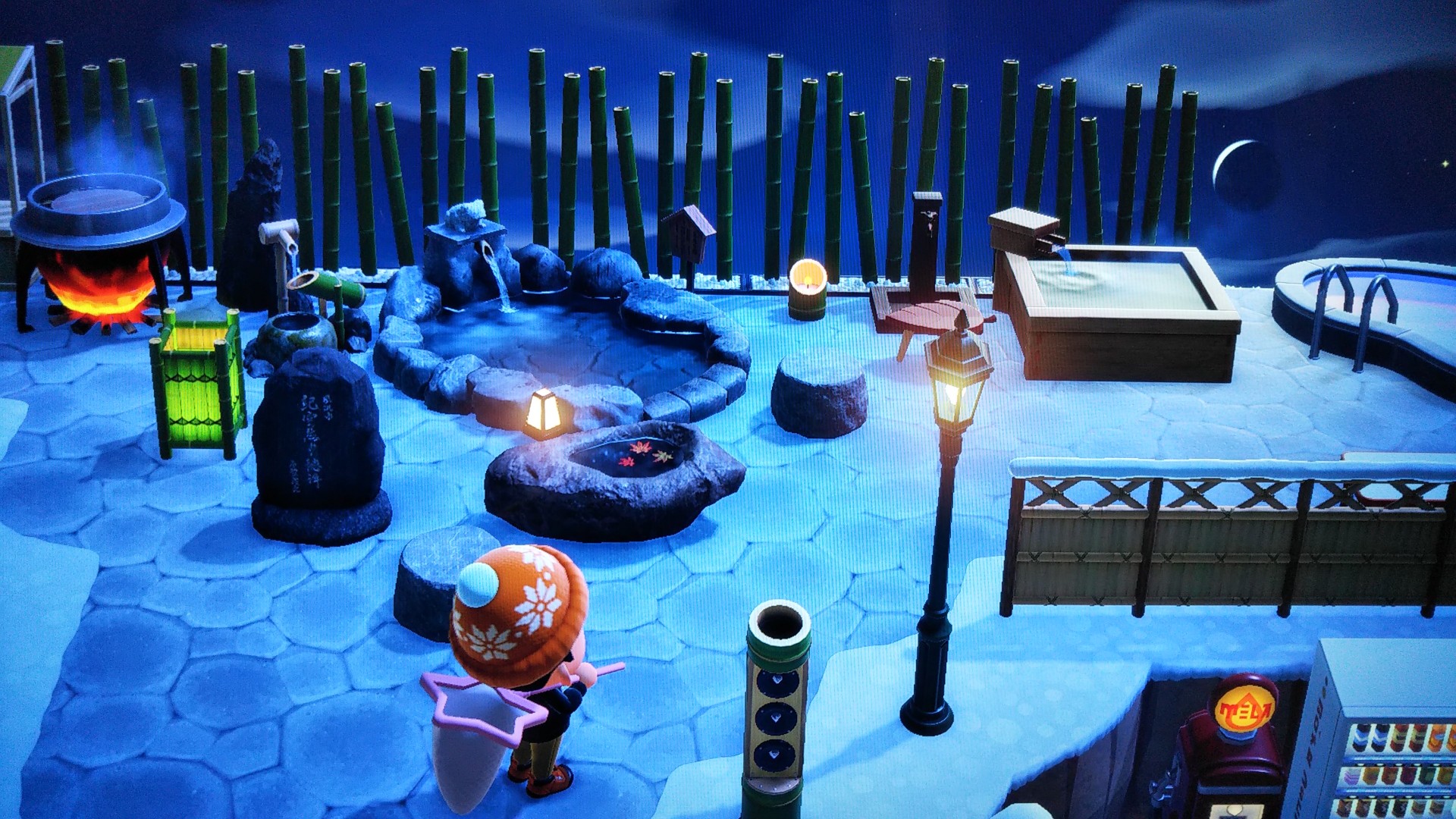 前に作ってた温泉とプールのエリアに竹のスクリーン追加したら更に雰囲気が出た。